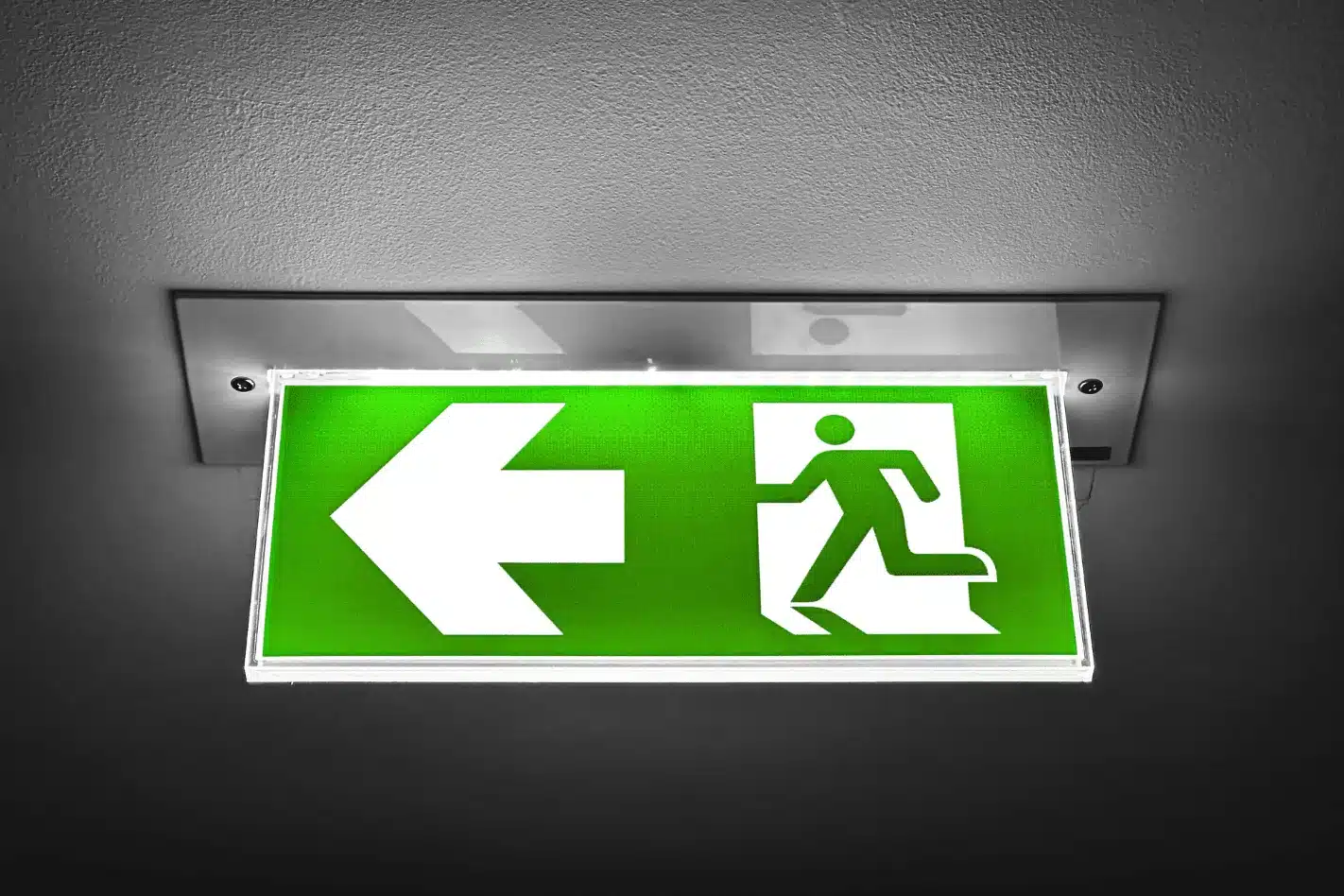 - All Exit Signs must be a maintained fitting, meaning they should be illuminated at all times